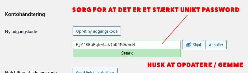 Her kan du se hvor og hvordan du ændre dit password i WordPress